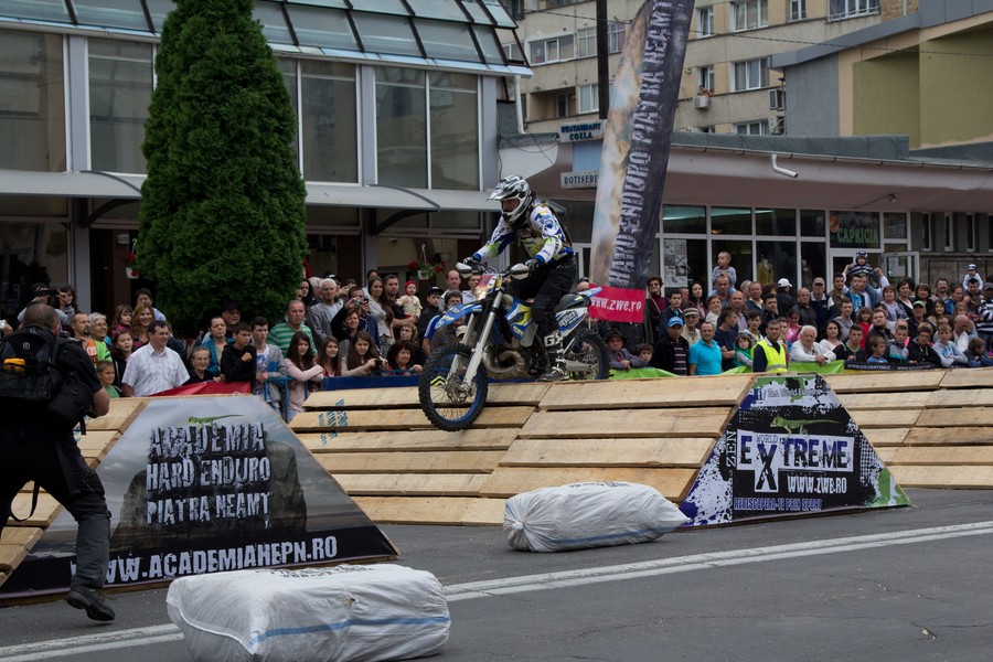 02-prima-zi-hard-enduro-piatra-neamt-2013Prima zi a competiţiei Hard Enduro de la Piatra Neamţ 2013 s-a desfăşurat în centrul oraşului unde s-au strâns un număr impresionant de spectatori care au urmărit cu interes Prologul. La start s-au aliniat aproximativ 80 de concurenţi care şi-au turat motoarele, au scos scântei şi au făcut exhibiţii pe Bd-ul Ștefan cel Mare care s-a transformat într-un adevărat traseu de trial.