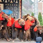 Originea jocului ursului la Asău se pierde mult în timp. În anii ‘60, Gavrilă Nicodim organizator cunoscut al cetei de urşi, a adus pentru întâia dată bătaia cu două ciocănele la o tobă mai mare, obicei copiat de la nişte prieteni din Dărmăneşti. Bătaia ritmică, specifică Asăului, este creaţia lui, rămânând unică şi reprezentativă. Gavrilă Nicodim a strâns pentru prima dată mai multe piei de urs – opt – şi a avut ideea jocului ursului pe par, joc moştenit şi azi de asăuani, devenit specific comunei. În prezent, fiul acestuia, Daniel Nicodim, încearcă să ducă mai departe tradiţia moştenită de la tatăl său, ajungând să strângă un număr impresionant de oameni – 60. Ceata urşilor de la Asău participă acum la fiecare festival important de datini şi obiceiuri româneşti.