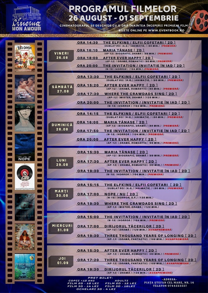 Program Cinema Mon Amour, 26 august – 1 septembrie 2022