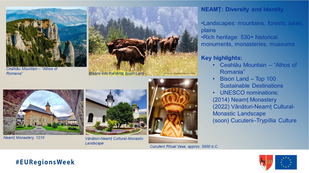 Prezentarea Experienței Neamțului, de pe data de 14 octombrie, a subliniat modul în care județul nostru valorifică turismul, cultura și patrimoniul ca resurse pentru dezvoltare durabilă, coeziune comunitară și promovarea identității locale.