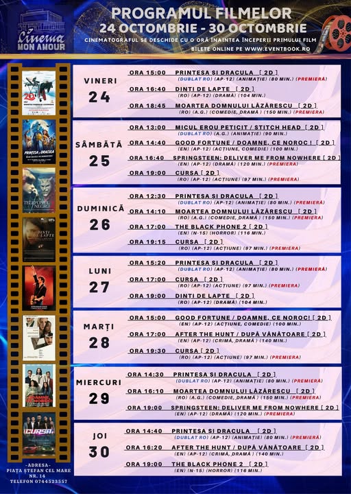 Programul Cinema Mon Amour Piatra Neamț în perioada 24 – 30 octombrie 2025