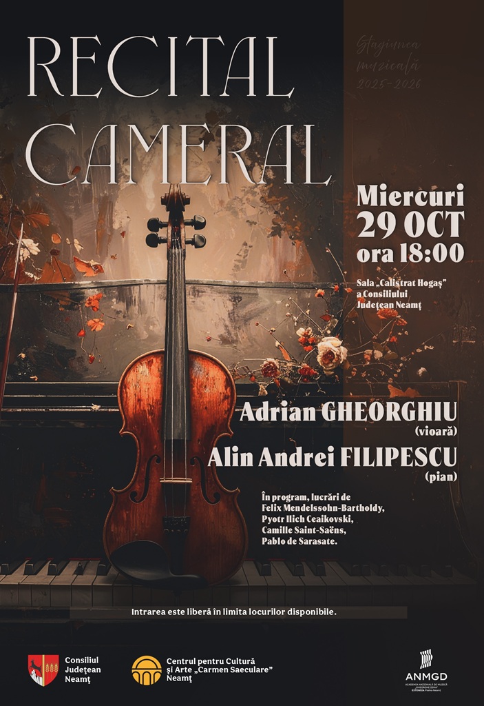 Evenimentul va avea loc miercuri, 29 octombrie 2025, ora 18:00, la sala „Calistrat Hogaș” a Consiliului Județean Neamț.