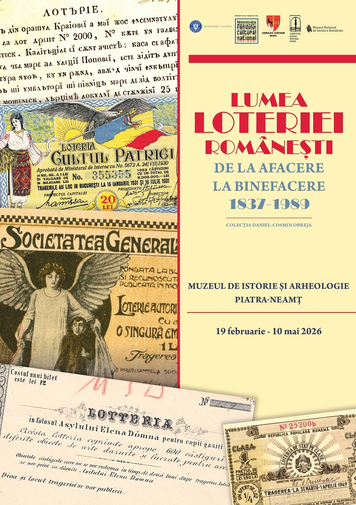 Complexul Muzeal Național Neamț și Muzeul Național de Istorie României anunță organizarea expoziției „Lumea loteriei românești: de la afacere la binefacere (1837-1989)” la Muzeul de Istorie și Arheologie Piatra-Neamț. Vernisajul va avea loc joi, 19 februarie 2026, ora 13.00.