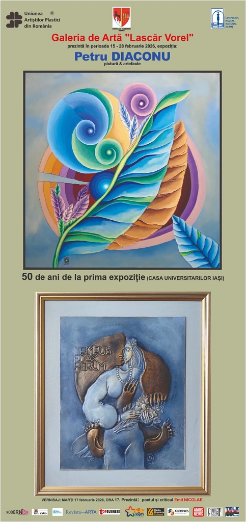 Galeriile de Artă „Lascăr Vorel” din Piatra-Neamț vă invită la expoziția personală a îndrăgitului artist pietrean Petru Diaconu în perioada 15 – 28 februarie  2026, cu ocazia împlinirii a 50 de ani de la prima expoziție (de la Casa Universitarilor din Iași).