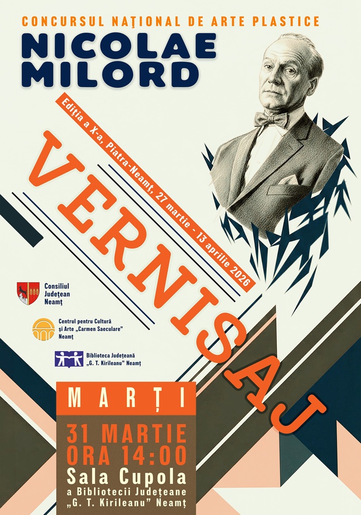 Între 27 martie și 13 aprilie 2026, Centrul pentru Cultură şi Arte „Carmen Saeculare” Neamţ, prin Şcoala Populară de Artă Piatra-Neamţ, organizează cea de a zecea ediţie a Concursului naţional de arte plastice „Nicolae Milord”, proiect cultural-educativ demarat în 2017 pentru a promova creaţiile elevilor şcolilor de arte din ţară, precum şi pentru o mai bună cunoaştere a operei și a personalității pictorului pietrean Nicolae Milord.