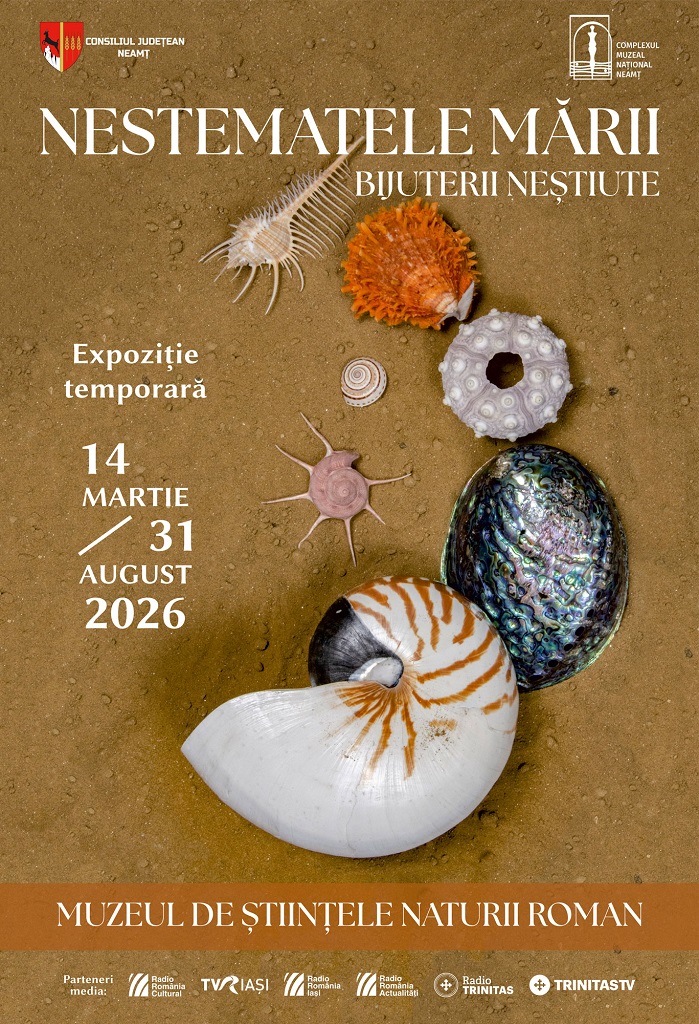 Muzeul de Științe Naturale Roman din cadrul Complexului Muzeal Național Neamț, invită publicul, începând cu data de 14 martie 2026 să viziteze expoziția temporară ,,NESTEMATELE MĂRII – BIJUTERII NEȘTIUTE”.