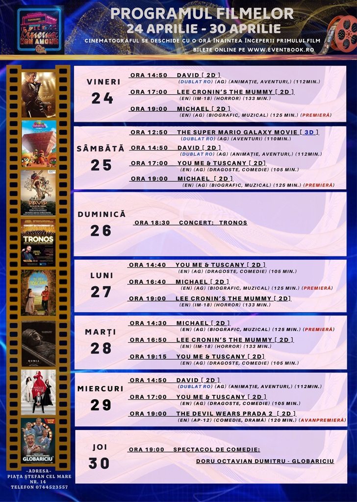 Programul Cinema Mon Amour Piatra Neamț în perioada 20 – 26 aprilie 2026